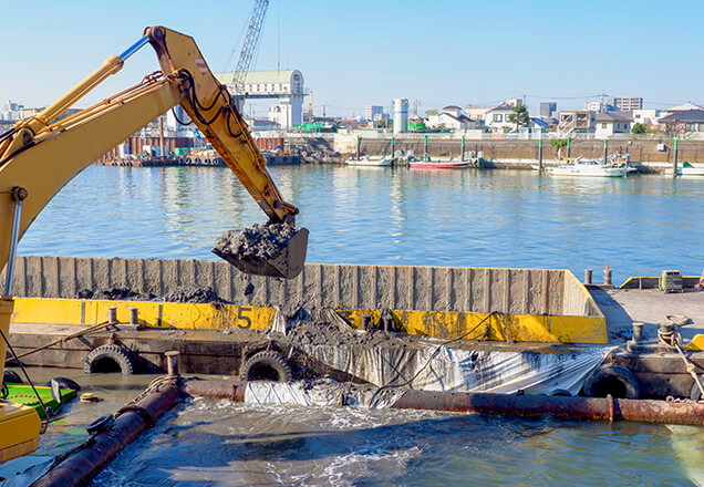 河川や港湾などでのしゅんせつ工事を通じて、水路の安全性や機能を確保します。豊富な経験と確かな技術で、地域の防災や環境保全に貢献しています。