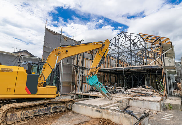 木造から鉄骨造まで幅広い建物の解体工事に対応。安全管理を徹底し、周囲への配慮を欠かさず、迅速かつ丁寧な作業で安心してお任せいただけます。